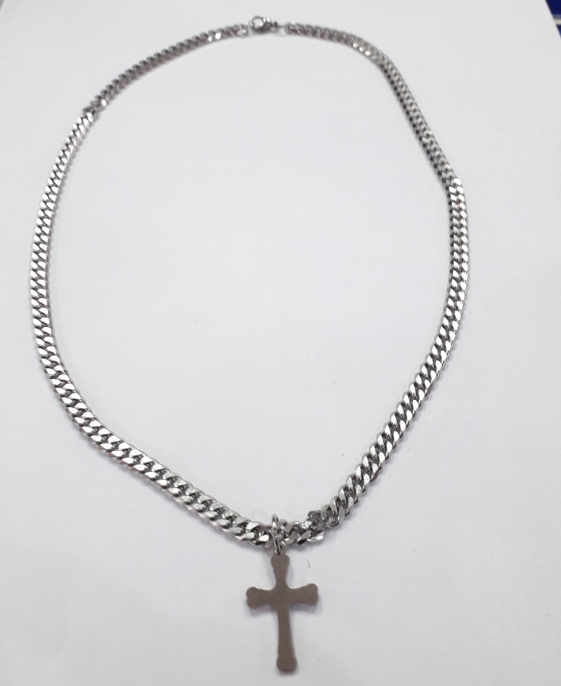 50 cm Stainless steel cross and chain necklace. Chain can vary.
